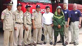 Comments from the OESP team: We witnessed first hand what dangers the Cambodian fire fighters go through when battling a fire (on March 12th). None of them were well equipped and their equipment failed putting them in danger. Some of them do not have boots but were wearing sandals. Their hose broke right in front of us. Our goal is to have a new fire station in Cambodia that is also a training center with classrooms, a training tower that will allow us to burn it so the students can put out the fire and burn it again. The fire station will be manned with fire trucks, ambulances and personnel ready to respond at anytime. There will be fire fighters and medics "living" at the fire station. This station that we envision is a typical fire station and training center that is the same all over the world (but Cambodia does not have one). We would like to teach their existing fire fighters better techniques in fighting fires. We will also select candidates and train them to become "medics" so they can work on ambulances. We plan to execute the program by February of next year. The Cambodian government likes our project idea because it is completely different and unique. We have been in communication with Side by Side International for almost a year and they are seeking to help our program. They were the first group to find us an ambulance, and meanwhile Eon August 4, 2002 - they shipped five ambulances to Cambodia in support of our project.