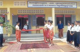 Computers, equipment and books are donations for various schools of American Relief for Cambodia’s rural school project. 110 schools have been completed & 190 sponsored. Pictured below is the Kome Hyappyo School during its opening ceremony. We contributed t-shirts & shoes for the students. |